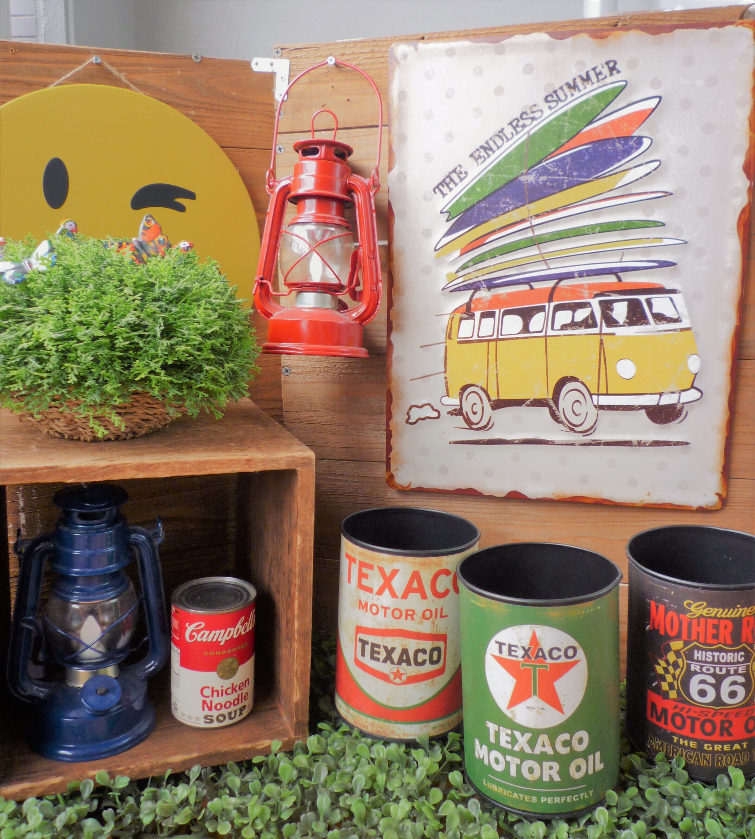 アンティーク風なアメリカンヴィンテージ、カリフォルニアスタイルのお部屋やガレージ、カフェにピッタリ!! おしゃれ度もUPしますね。