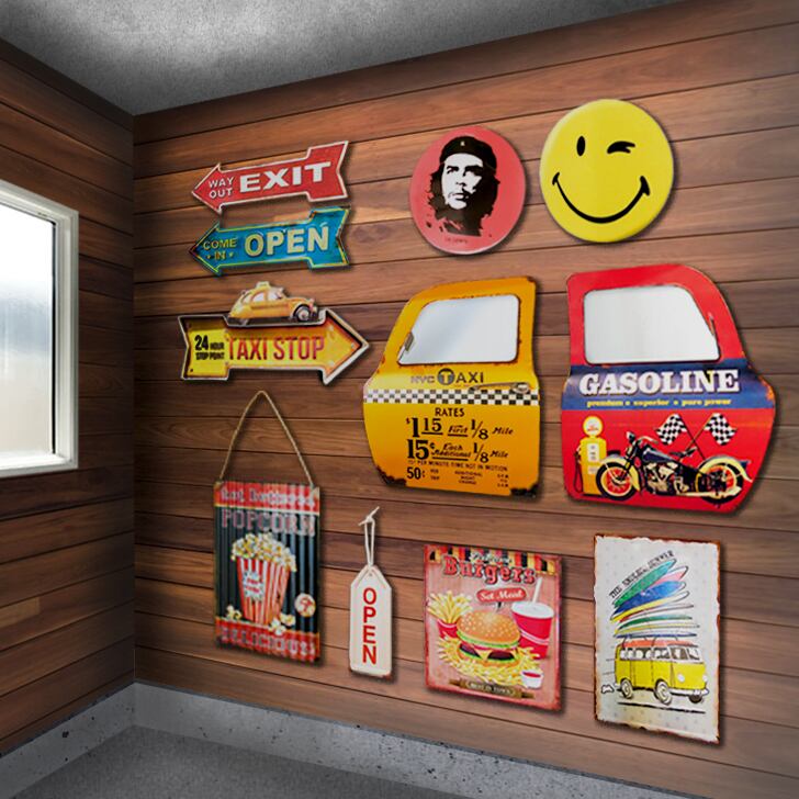 アメリカンPOPな雰囲気の看板プレートです。波状にウェーブしていて、レトロ感もあり、お部屋やガレージのインテリアやCAFEやSHOPのアクセントになります。