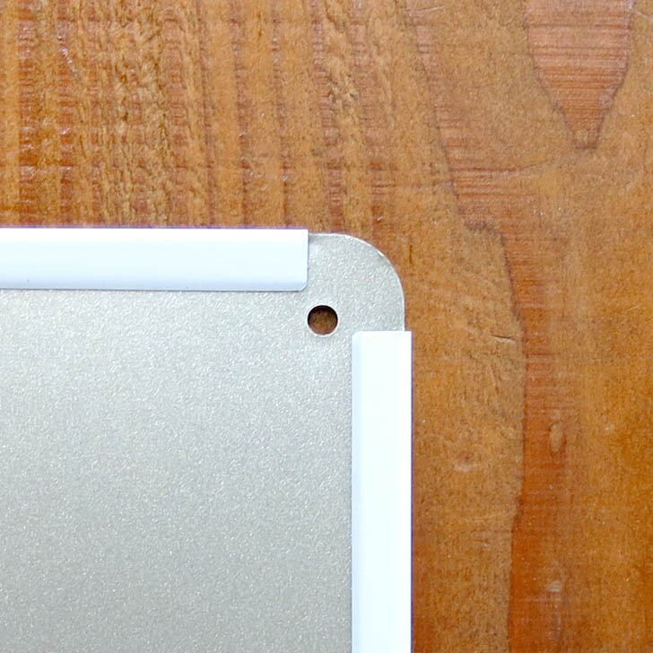 4隅に丸穴が開いていて、針やピンなどですぐに壁に貼れます。