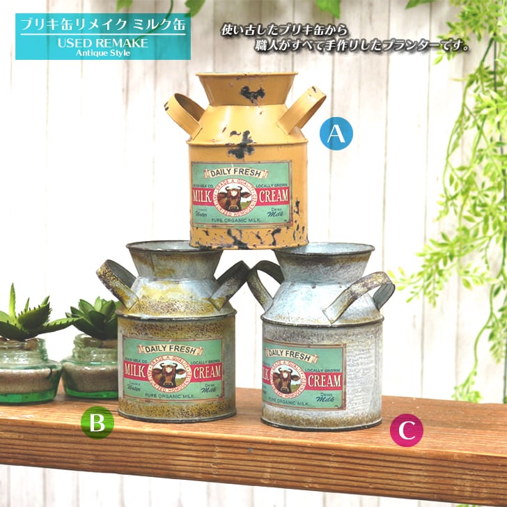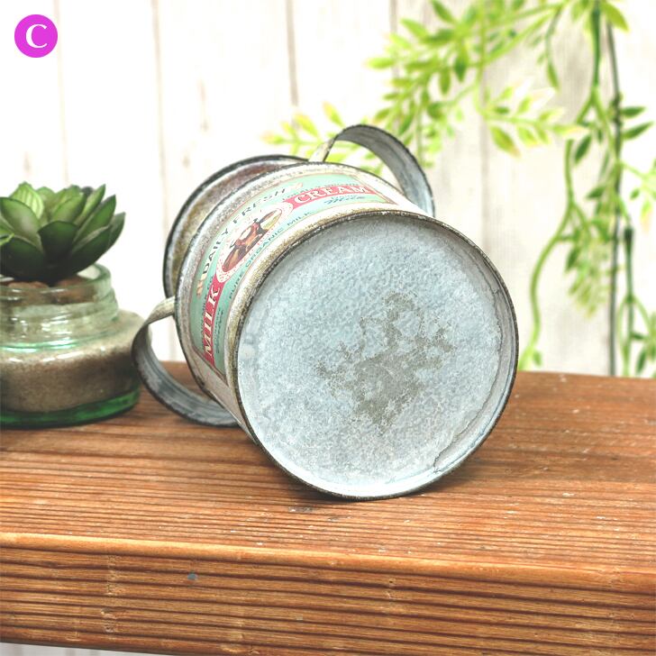 ブリキポット アンティーク ミルク缶 ガーデニング プランター 鉢 植物 小物入れ インテリア ジャンクグッズ レトロ アンティーク スタイル