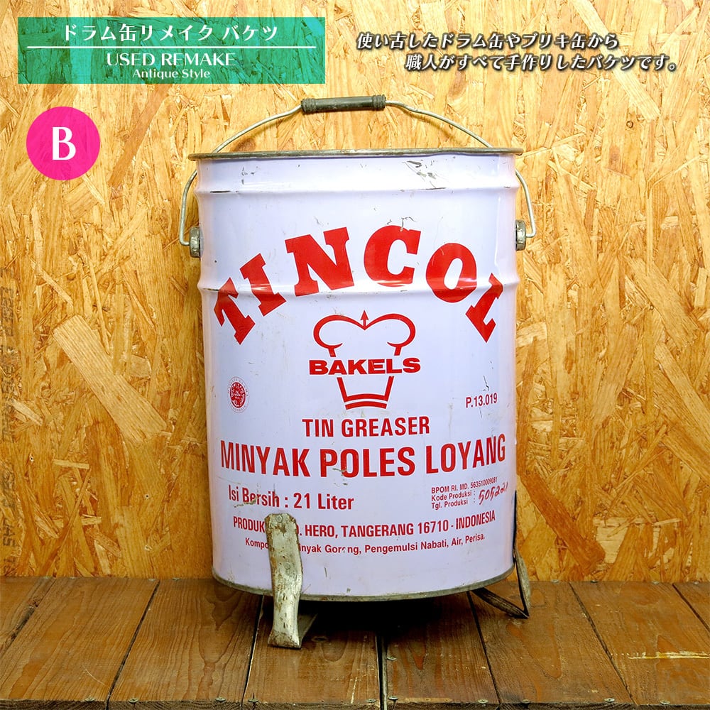 USED ドラム缶 リメイク スチールバケツ アンティーク ガーデニング プランター 鉢 植物 ゴミ箱 オイル缶 ガレージ アメリカン雑貨 インテリア ジャンクグッズ レトロ アンティーク スタイル