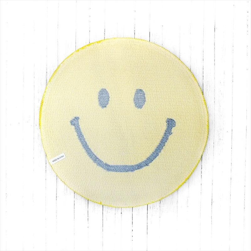 スマイルマット ラウンドマット にこちゃん ニコちゃん スマイリー 50cm フロアーマット 玄関マット ドアマット アメリカン雑貨 マット 室内 滑り止め 子供部屋 インテリア 西海岸 カリフォルニア おしゃれ ナチュラル雑貨