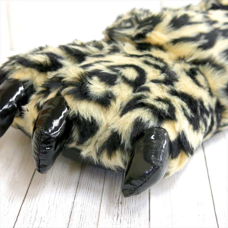 人気のヒョウ柄で、爪付きがかわいい怪獣ルームシューズです。ふかふかで温かくて、裏面は滑り止めになっています。