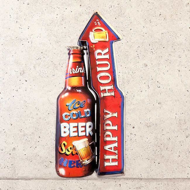 サインプレート ブリキ看板 BEER HAPPY HOUR アイアンプレート ビール型 アメリカン雑貨 壁掛け ビッグプレート エンボス GARAGE ROUTE66 USA ガレージ インテリア
