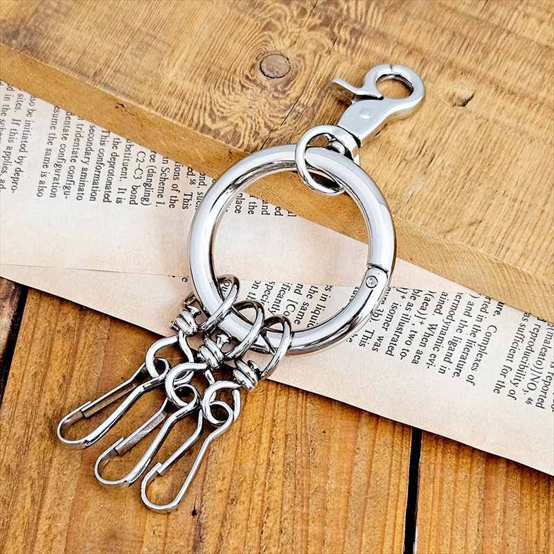 丸形パーツに3つのリングが付いて実用性の高いキーホルダーです。